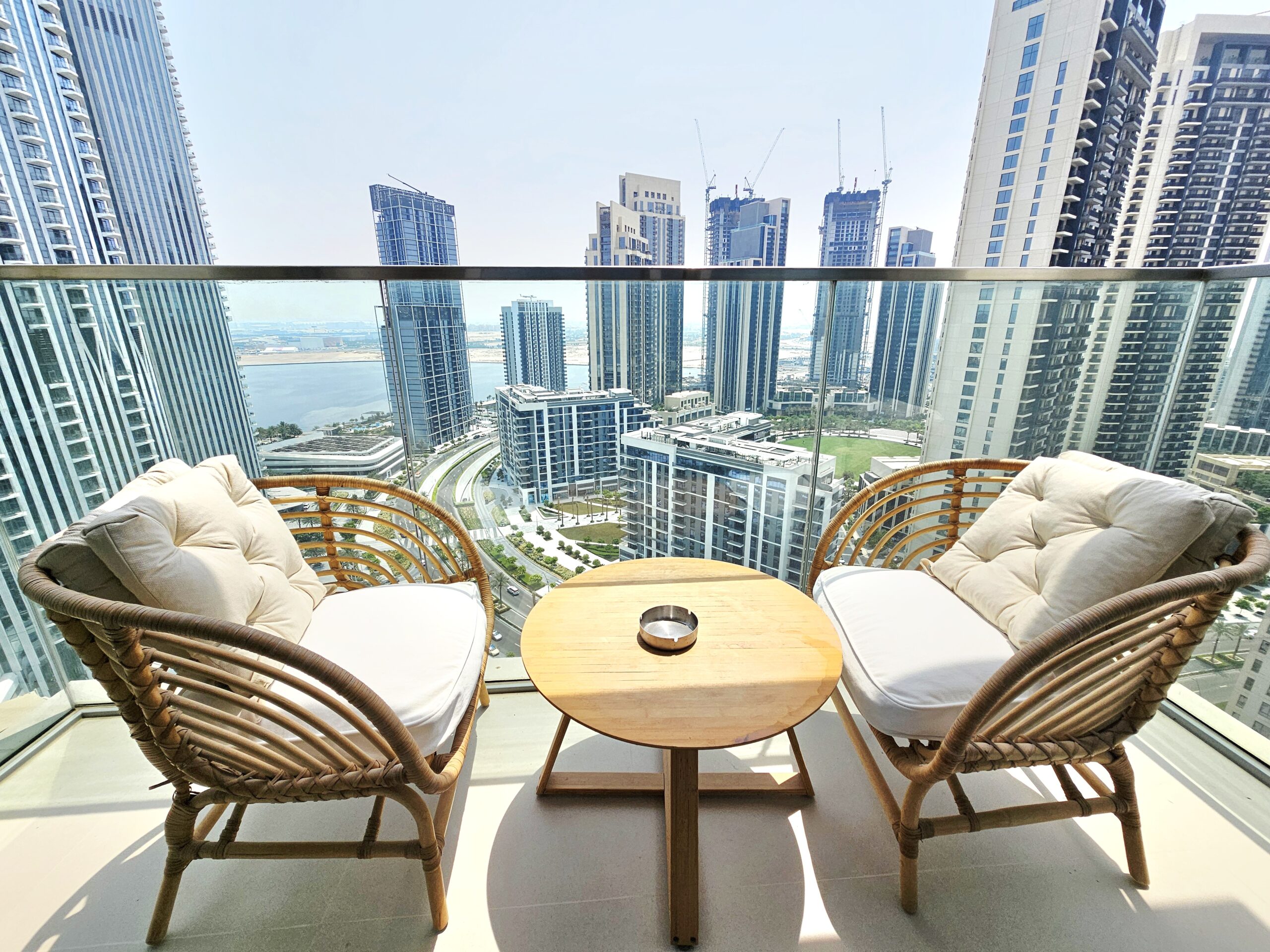 Perfect for morning coffee or sunset views over the iconic Dubai skyline.